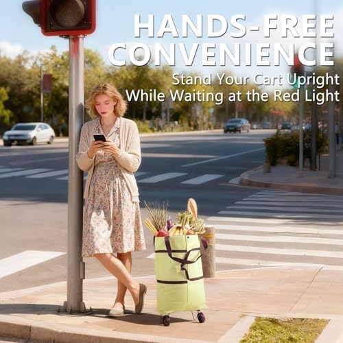 Freestanding Stability: Designed with a reinforced base and smooth-rolling wheels, the rolling shopping bag stands upright securely when fully expanded. Keeps your hands free while packing or unloading groceries