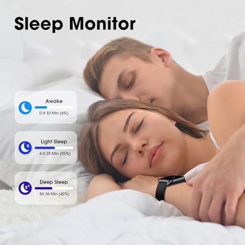 【24/7 Heart Rate Monitor and Sleep Tracker Monitor】Our smart watch monitors your heart rate in real time, and you can use the watch to manually detect your Heat Rate,SpO2 and Stress. This smart watch trackers your relevant sleep data after you fall asleep, assisting you in cultivating a healthier lifestyle.
