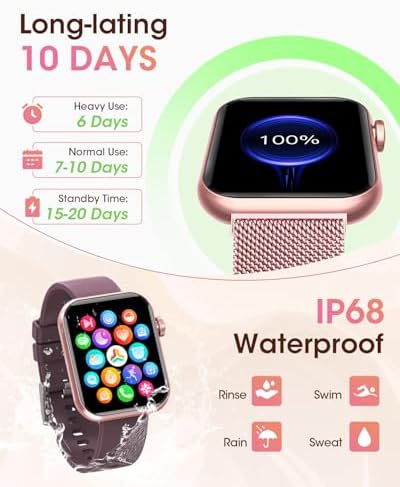 IP68 Waterproof Fitness Tracker: Designed for an active lifestyle, this smartwatch features an IP68 waterproof rating, allowing you to wash hands, sweat during workouts, or withstand splashes and rain without worry. But this smartwatch is not suitable for diving, high-pressure water activities, or prolonged underwater use
