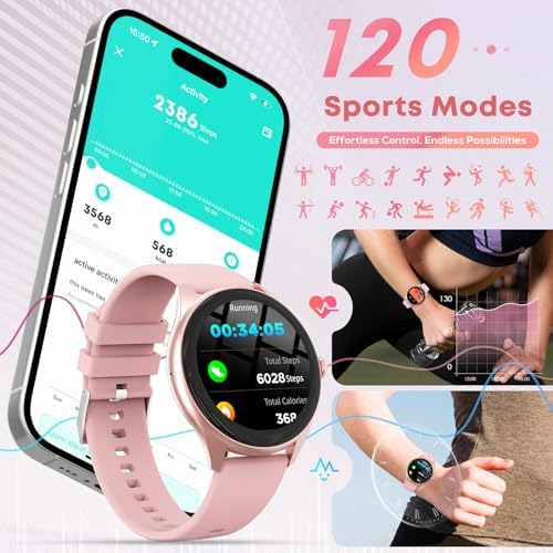 【🎯120 Sports Modes & Comprehensive Fitness Tracking】DIVOAZBVO Smart Watches for Women Men features a 1.39″ HD IPS touchscreen , offering crystal-clear visuals. It includes 120 sports modes to track various activities such as walking, running, cycling, and swimming, along with integrated heart rate and sleep monitors for a thorough understanding of your health (Note: Steps on the watch are usually synchronized and displayed after 20 steps)
