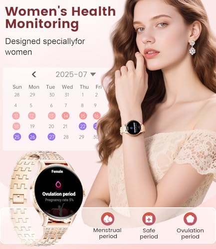 ✅【Designed for Women’s Wellness – All-in-One Health Tracker】More than a smartwatch—it’s your personal women’s health assistant. Track your menstrual cycle, ovulation, hydration levels, and get timely sedentary reminders. Monitor your heart rate, blood pressure, SpO2, and sleep patterns 24/7, helping you stay informed and in control of your well-being.