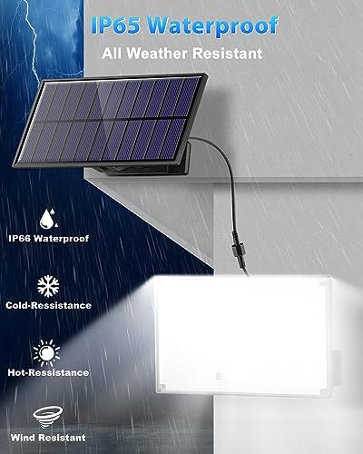 【Outdoor Solar Lights For Indoor and Outdoor Use】The 172LED outdoor solar light consists of two parts: solar panel and light body. Two parts of the lights can be placed independently, connected by 16.5ft cable giving you the flexibility to customize the lighting to your needs. No need to pay high electricity bills.