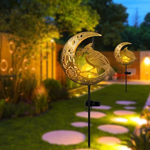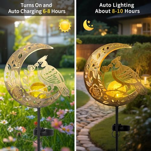 ❤️ Mythical Phoenix & Moonlight Design:Handcrafted solar lights feature an elegant phoenix bird embracing a crescent moon,creating enchanting garden ambiance. The celestial-inspired outdoor decor adds mystical charm to patios, pathways, and Asian-themed landscapes with its warm white glow. Perfect for gifting to mythology lovers and spiritual decorators.