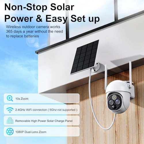 【Solar Power & Cameras】Our solar-powered outdoor camera eliminates the need for wires and cables for convenient outdoor use, instead featuring a rechargeable solar panel for necessary power.