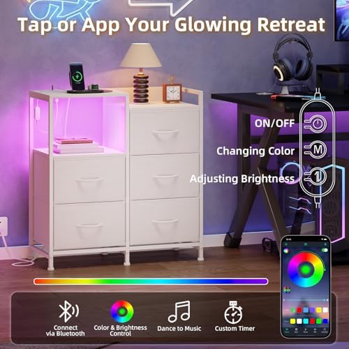 Nightlight and Room Ambiance: Control the lighting via cord or app, with options for timer settings, voice activation, and music sync to create the perfect ambiance. Somdot nightstand, featuring a smart LED light stripnightstand’s LED lights offer versatile lighting options that give room just the right amount of light to sleep