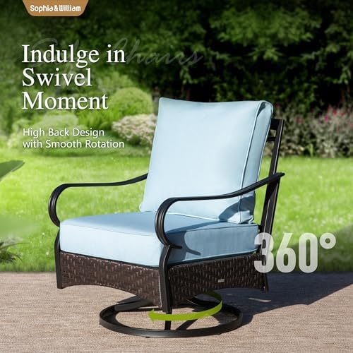 Metal Patio Furniture Sets: Sophia & William patio furniture sets include 56-inch fire pit table, 3-seater sofa, and 2 swivel chairs,1 loveseat, designed to elevate your outdoor living experience. Perfect for relaxing or entertaining, this set includes comfortable seating and the powerful fire pit, ideal for gatherings, barbecues, or enjoying a quiet moment outdoors.