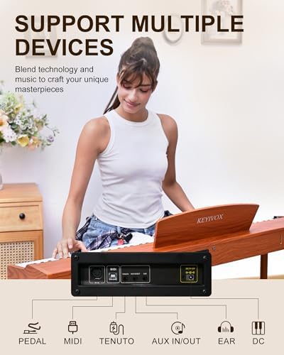 Multiple Connectivity Options: This piano keyboard 88 keys provides USB-MIDI to connect with computers, ipad, and popular learning apps, a headphone jack for silent practice, and AUX ports for speakers or amplifiers
