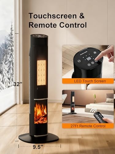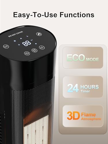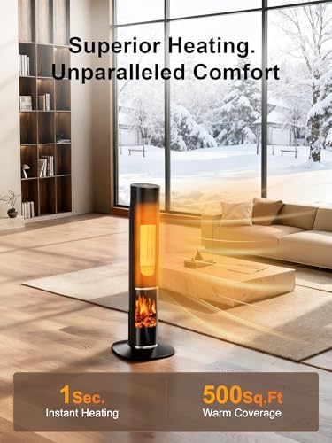 【🔥3D Flame Heater for Cozy Ambiance】 The KEGIAN tower heater for indoor use features a mesmerizing 3-color flame effect, perfect for creating a warm, relaxing atmosphere in bedrooms, living rooms, or offices. More than just an indoor space heater, it doubles as a gentle night light, adding style and function to any space. With its realistic flickering flames, it serves as the ideal large room heater—now enhance your holiday season by pairing its soothing glow and warmth with festive decorations for a truly cozy Christmas ambiance.