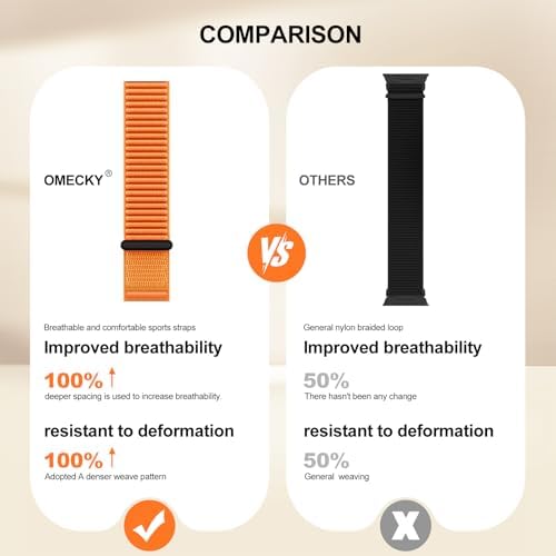 Perfect Compatibility & Assurance – OMECKY sports nylon watch bands precisely engineered for a seamless fit on Apple Watch models ( iWatch Bands for Se, Ultra 3 2 1, Series 11, Series 10, Series 9, Series 8, Series 7, Series 6, Series 5, Series 4, Series 3, Series 2, Series 1). We provide two size fit most, 1, 5.11″–7.87″ (130–200mm) fits 38 40 41 42mm cases; 2, 5.51″–8.66″ (145–220mm) fits 44 45 46 49mm cases.
