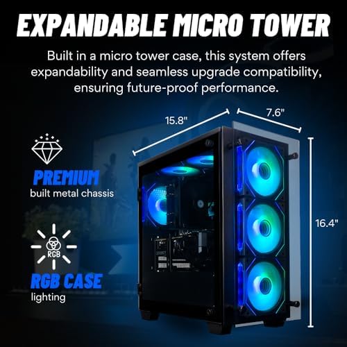 [FANS] 6 ARGB PWM Fans for Powerful Air Flow and Dynamic Speed Control | [PC CASE] Stratos Micro with Front Glass Panel, 3 Metal Blades, and Glass Side Panel Door | No Bloatware | Graphic output options include 1x HDMI and 1x DisplayPort Guaranteed, additional ports may vary | Free Rainbow Backlit USB Keyboard and LED USB mouse
