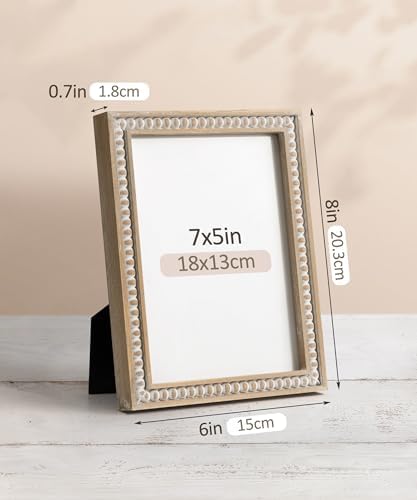 𝙁𝙖𝙧𝙢𝙝𝙤𝙪𝙨𝙚 𝘽𝙤𝙝𝙤 𝘿𝙚𝙨𝙞𝙜𝙣 This 5×7 photo frame features white wooden bead intarsia, creating a distinctive look that merges the charm of farmhouse style with the eclectic flair of boho design, offering a unique decorative piece.