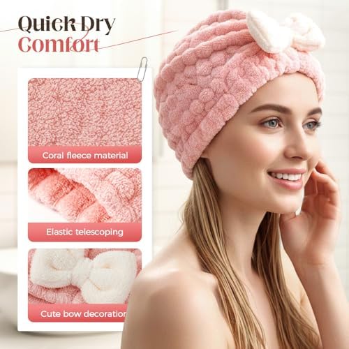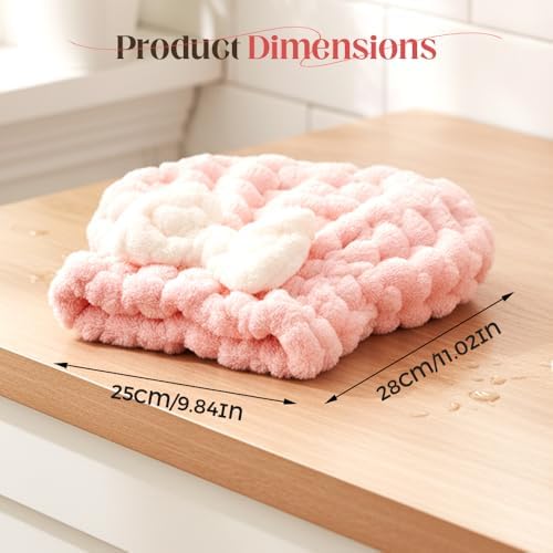 【Convenient Design with Elegant Bow】The built-in secure button and long, flexible design make it easy to wrap and twist your hair into a stylish turban in seconds. The attached, elegant soft bow adds a touch of chic style, transforming a simple hair towel into a fashionable bathroom accessory
