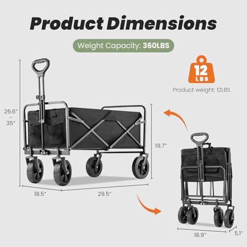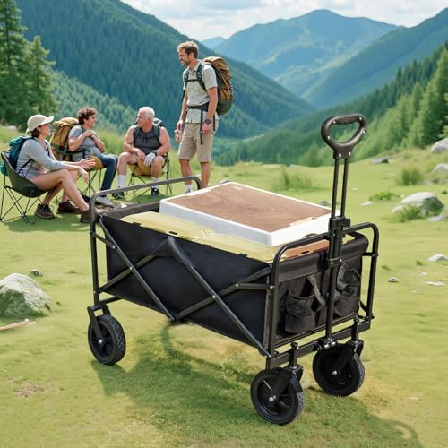 【Simple to Use】Our foldable wagon cart requires no assembly. When not in use, it folds down compactly within seconds for easy storage or transport, Whether you’re heading to the beach, park, or market, this cart simplifies your outings.