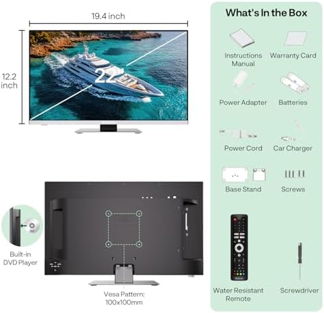 【Marine-Grade TV Durability & Wide Voltage Support】Built to withstand the elements, this TV with built-in DVD player is moisture, corrosion, and salt spray-resistant—perfect for RVs, boats, beach houses, and home use. With AC/DC compatibility and support for DC 9-32V, it adapts to your needs wherever you are.