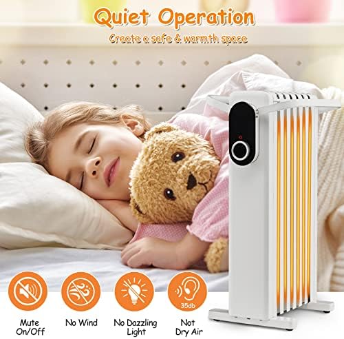 Quiet Operation & Wide Application: This radiant heater with no wind, no dazzling light and no disturbing noise design creates a comfortable environment for you to sleep or relax. Thus, you can place this oil heater in the living room, bedroom, dining room, office, etc.