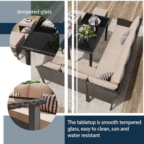 【Versatile Modular Design】: Easily customize your seating arrangement to fit any outdoor space—combine pieces for intimate conversations or spread out for a relaxed, open feel. The set includes a tempered glass coffee table for convenience and style.
