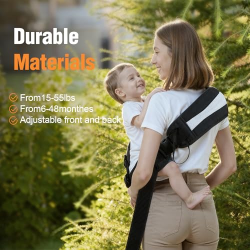 Adjustable & Ergonomic Fit Our toddler carrier sling is designed with dual front and back adjustable straps for a custom fit on every body type—even plus-size parents. The ergonomic M-shaped seat promotes healthy hip development, making this baby sling carrier perfect from newborn to active toddler stages.