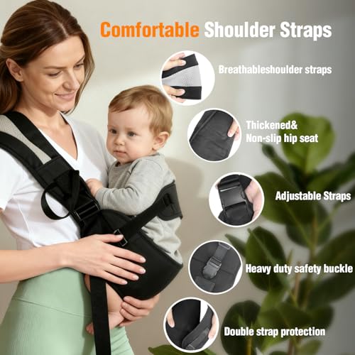 Comfort & Safety First Reinforced buckles and plush, padded edges keep your little one secure without pinching or chafing.The widened and thickened anti-slip seat cushion ,combined with 3D breathable mesh, keeps your child cool and comfortable while preventing slips and absorbing shocks. This makes it perfect for a hiking carrier for toddler or toddler carrier sling.