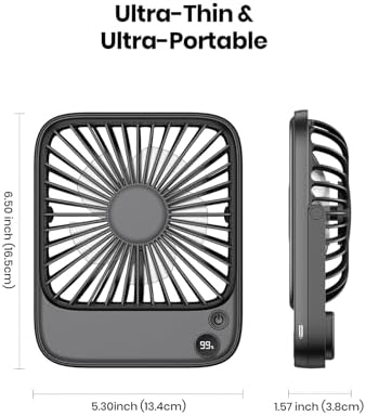 Ultra-Thin Design for Optimal Space Saving — Measuring at a compact 6.5×5.3×1.57inch, this slim desktop fan effortlessly blends into any setting, adding a touch of elegance while preserving precious desk space