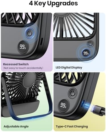 Convenient USB-C Charging & Intuitive Display — Equipped with a USB-C charging port for universal compatibility and faster charging, this fan also features a built-in screen that clearly indicates battery remaining power and current speed setting, allowing for effortless control and peace of mind