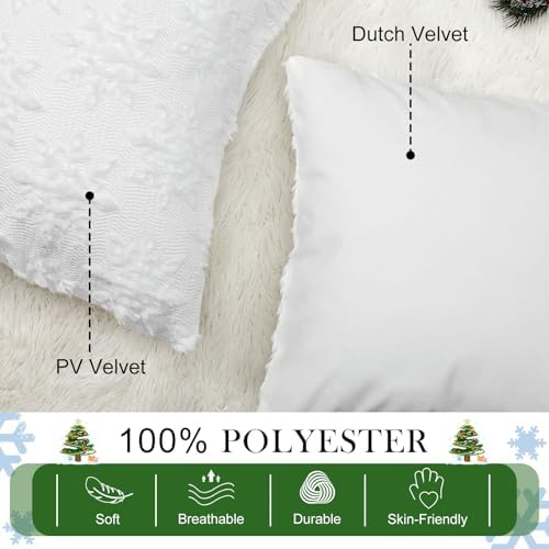 Soft and Comfortable Fabric: our winter white cushion covers crafted quality soft plush material, PV plush and Dutch plush, bring you a delicate touch experience like clouds and skin-friendly; Transform your couch or bed with our snowflake pillowcases that deliver both comfort and style throughout the season