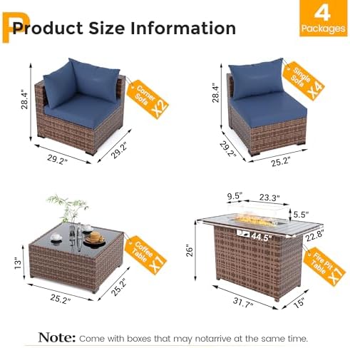 Fast Setup & Friendly Support: Assembly is easy with step-by-step instructions. This wicker patio furniture set ships in 4 boxes (which may arrive separately). Our based customer support team is always ready to assist—before or after your urchase.
