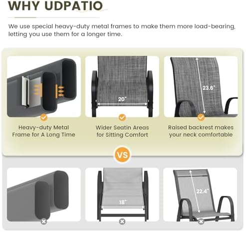 【WIDER SEAT & HIGH BACK】Our patio dining chairs are 20 inches wider than traditional 18-inch seating. It also features an ergonomic high back structure. The comfortable width of the chair seat and the contoured backrest make your leisure time more comfortable