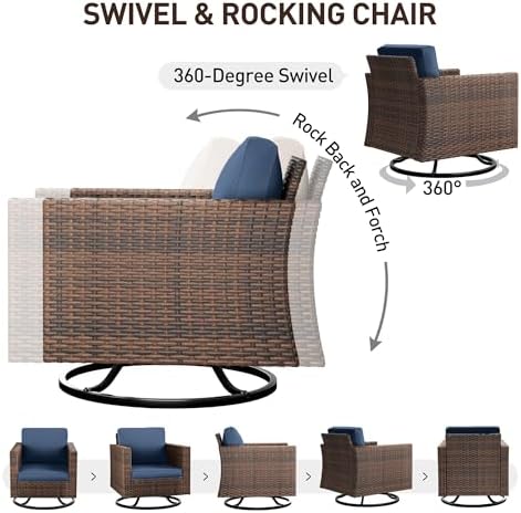 UPPATIO 5 Pieces Outdoor Patio Furnitiure Set with Rocking Swivel Chair