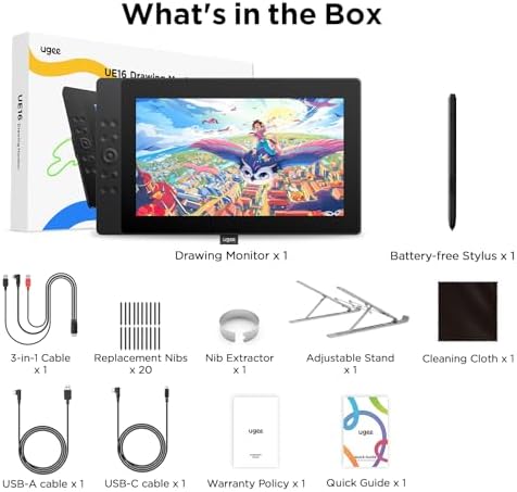 143% sRGB Color Gamut:143% sRGB ultra-high color gamut, the UE16 drawing tablets with screen showcases an exceptional ability to reproduce 16.7 million colors with its 8-bit color depth. This precision and finesse ensure an accurate and vivid portrayal