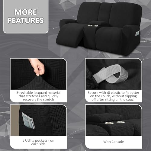 HIGH QUALITY MATERIAL: This innovated PATENTED 8 Piece love seat reclining 2 seater with console cover is crafted from luxurious jacquard fabric, and is very soft, comfortable and sturdy ULTIMATE DECORS furniture covers are as close to custom.