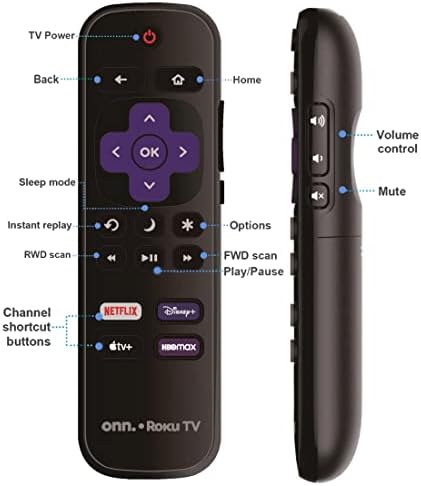 Replacement Remote Control fits for all Onn. Roku TV Smart 4K Ultra HDTV with 4 Shortcut APP Keys – Netflix, Disney Plus, Apple TV+, and HBO Max buttons (2 Pack)