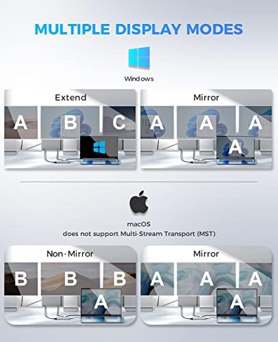 【Triple Monitors Display Flexibility】UtechSmart conquers this technical hurdle to create the first USB C docking station with triple display capability on the market. the UtechSmart docking station supports single and dual HDMI monitors up to 3840×2160@30Hz or triple monitors up to 1920×1080@60Hz. Three monitors modes Boost your efficiency 3 times. Note: It does not support extend mode for macOS.
