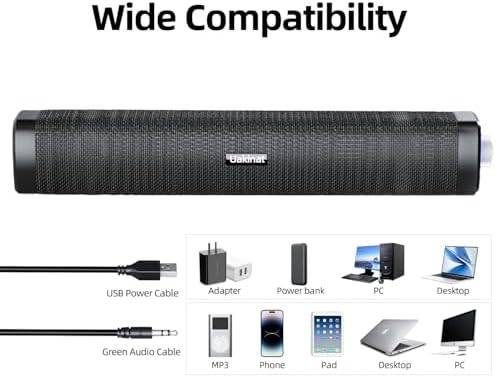 【Stereo and Noiseless】The PC speaker uses upgraded 2x3W technology to deliver the clear sound .The soundbar speaker can enhance your listening experience when you enjoying indoor movies, videos, music and games.
