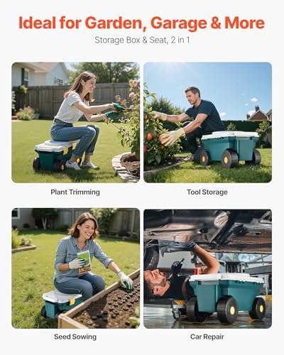 Relieves Back and Knee Pressure: Designed with comfort in mind, VEVOR garden seat with wheels doubles as a sturdy bench, making low-ground tasks like planting and weeding easier without the need to squat or bend. It effectively reduces back and knee pain, making it ideal for gardening.