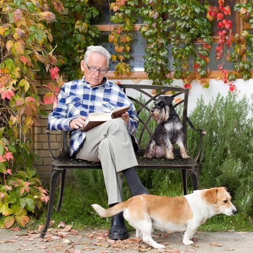 COMFORTABLE SEAT: The park bench is available to 1-2 person. The overall size is (38*20.5*35.4) inch. Hight capactity to 555 lbs. The bench is design with high backrest and curved arms which could provide much more comforts