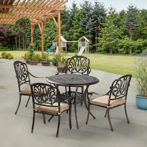 Patio Dining Set for 4: The classical 5-piece set effortlessly complements patios, gardens, and poolside areas with its sleek, weather-resistant finish
