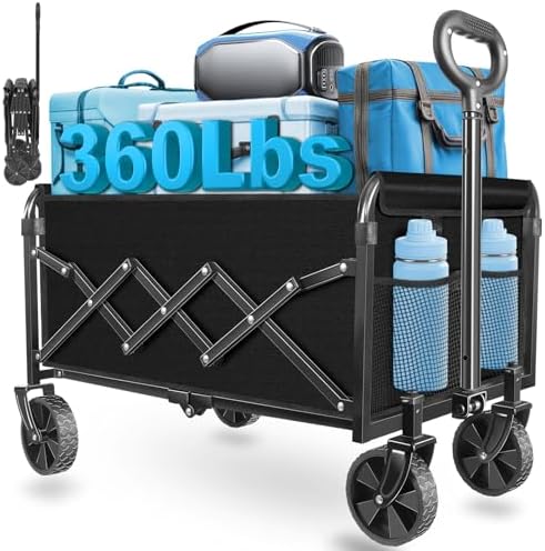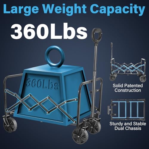 Heavy-Duty Construction for Reliable Performance: Built to last, this wagon cart features a robust, heavy-duty construction. The collapsible wagon with wheels is perfect for handling rugged terrains, making it a great choice for camping trips or transporting groceries