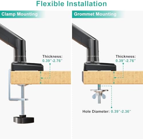 Easy Installation: The laptop stand for desk offers two installation options to ensure stability and full functionality. Depending on your desk situation, you can choose clamp or grommet mounting(suitable for desks from 0.39″ to 2.76″ thick). The hole diameter for grommet base should be 0.39″ to 2.76″.