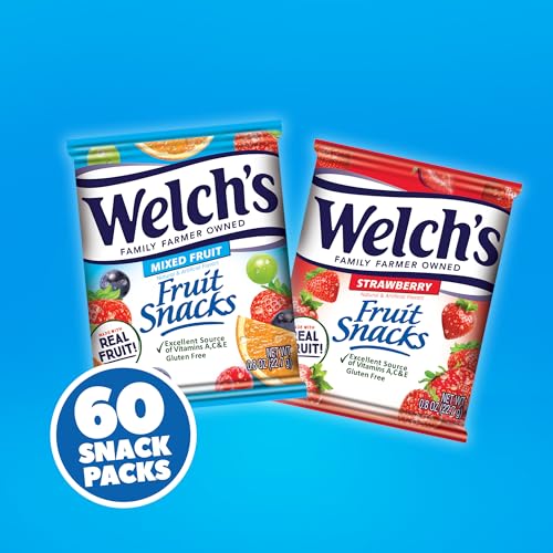 60 CT SNACK BOX – Contains 60Ct of 0.8oz Snack Packs of Welch’s Fruit Snacks in a delicious combo of Mixed Fruit & Strawberry flavors