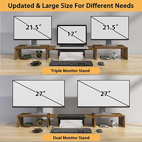 【 MULTI USE & UPGRADE 】This 3 monitor stand serves as your triple or dual monitor riser, laptop riser, printer stand, and can even be a bookshelf. Meanwhile,we upgraded a larger size for 3 monitors, adding slots for tablets, cell phones and holes for charging cables. The new functions will bring you more convenience every day.