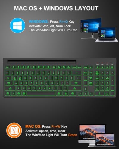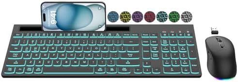 【LIGH UP WORK-LIFE 】The backlit wireless keyboard has 7 switchable backlights with an RGB mouse that automatically changes color (𝐁𝐚𝐜𝐤𝐥𝐢𝐠𝐡𝐭 𝐜𝐚𝐧 𝐛𝐞 𝐭𝐮𝐫𝐧𝐞𝐝 𝐨𝐟𝐟). Light-up keycaps and letters help you to use it more easily in low light and enhance typing accuracy.