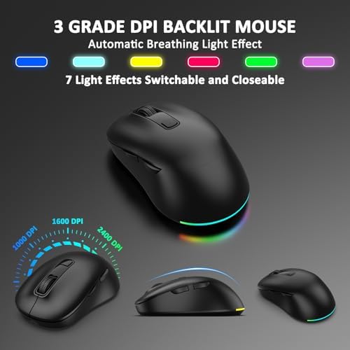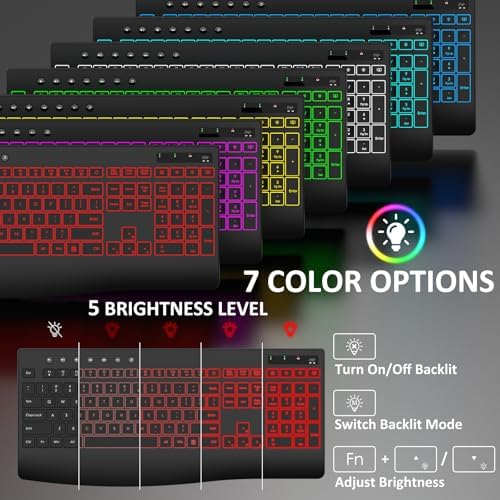 ▶【BACKLIT FOR WORK AND MOOD】: The backlit wireless keyboard comes with 3 lighting modes, 7 switchable backlight colors, 5-level brightness and a RGB wireless mouse that automatically changes color to match your mood, enhancing immersion at work