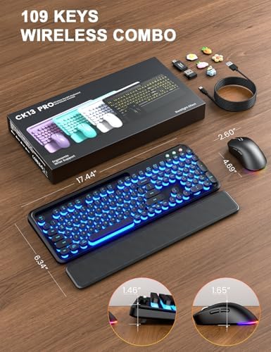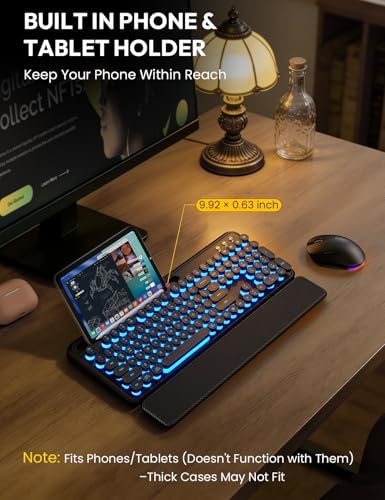Wireless Keyboard and Mouse Combo – Backlit Typewriter Keyboard with Magnetic Wrist Rest & Phone Holder, Light Up Round Keycaps, 2.4GHz Cordless Set for Mac, Windows, PC, Laptop, SABLUTE