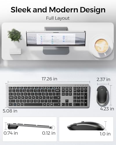 Full Size Wireless Keyboard Mouse — Full-size keyboard provides everything you need at your fingers: the media/fn keys, numeric pad etc. The mouse and the keyboard are easily operated with sensitive touch and combined signal, so all you have to do before enjoy this amazing keyboard and mouse is plug the USB receiver from the keyboard and turn both on