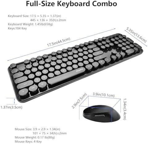 STIVIC Wireless Keyboard and Mouse Combo, Retro typewriter Style Keyboard with Round Keycaps, 2.4GHz Dropout-Free Connection Mouse with 3 Adjustable DPI for Windows Notebook PC