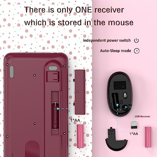 【Shared USB Receiver】The wireless keyboard and mouse set conveniently share a single USB NANO receiver, stored inside the mouse cover. It also includes a USB-C adapter, ensuring compatibility with a broader range of devices, including Windows 7, 8, 10, 11, and Mac
