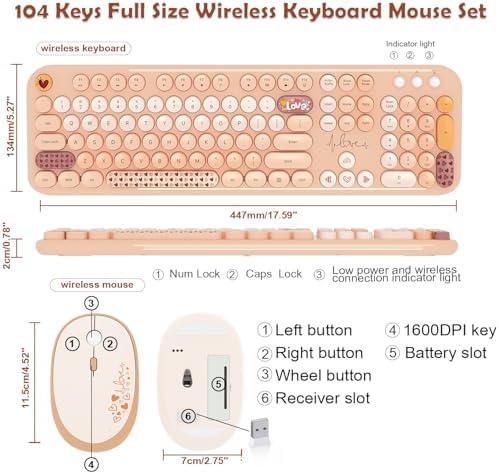 Adorable Design: This wireless keyboard and mouse set features an endearing bunny theme with cute icons and a soft color scheme.The keys on the top are in a gentle wave pattern, which adds a romantic color and a new element to work, and a good mood for every day’s work and life