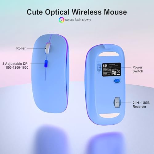 【Gorgeous Colorful Backlits】 The wireless keyboards has 7 color options,15 different lighting effects,5 levels of backlit brightness adjustable and 5 levels of brightness speed adjustable, paired with an RGB mouse that automatically changes 7 colors. Light up keyboard and mouse help you work better at night. Attention: You can turn off the keyboard lights anytime to save power, the mouse light cannot be turned off or adjusted.
