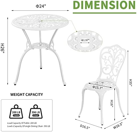 【Patio Furniture Set High Quality Materials】: Outdoor bistro set is made of cast aluminum, with cast aluminum frame, environmental protection coating, weather resistance, rust prevention, oxidation prevention, convenient maintenance, firmness and durability. The surface of tables and chairs is smooth without burrs, and it is very comfortable to sit up