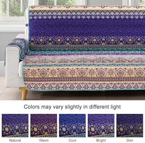 BOHO DESINGN: Bohemian style blue purple slipcover protector has strong color and complex design, which brings people strong visual impact and mysterious feeling. It can decorate your sofa and make your sofa look new. Make your room luxurious and fashionable.